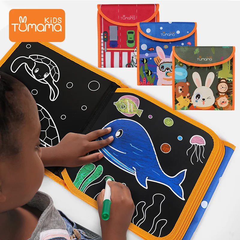 The Latest Tumama Portable Drawing Board Book Animal Marine Life Coloring Book DIY Blackboard Painting Drawing