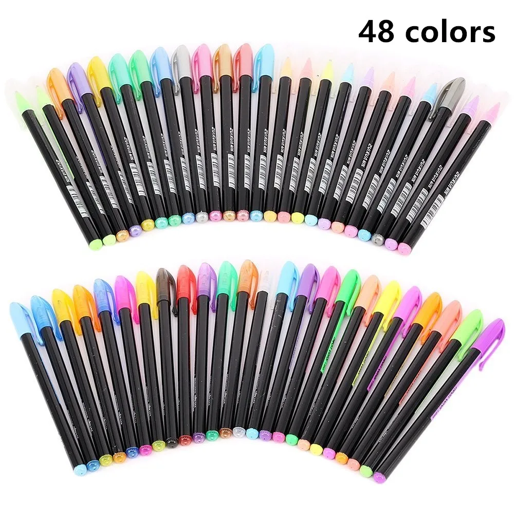 The Latest 48/36/24/18/12 Colors Gel Pens Set Glitter Gel Pen for Adult Coloring Books Journals Drawing Doodli
