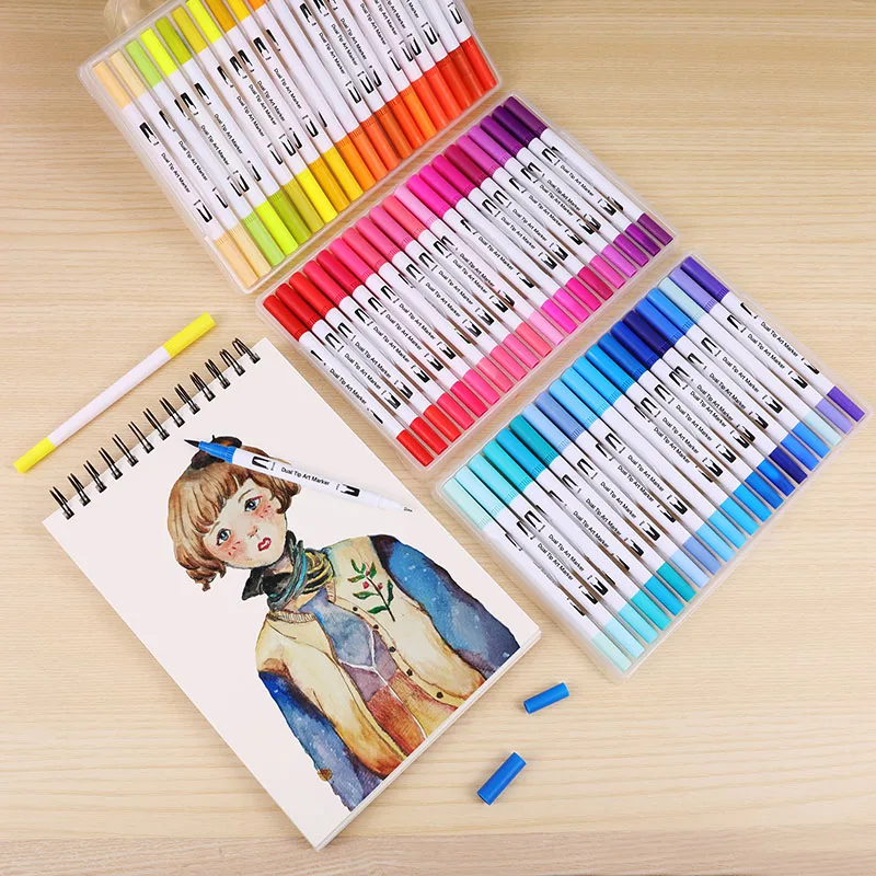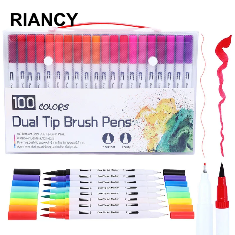 The Latest 12/18/24/36/48/72/100PCS Colors FineLiner Dual Tip Brush Pens Drawing Painting Watercolor Art Marke