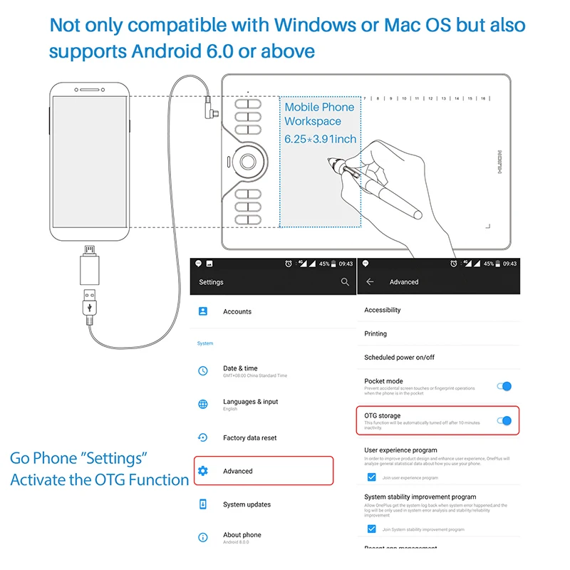 Buy Online HUION HS610 Graphic Tablets Digital Pen Tablet Phone Drawing Tablet with Tilt OTG Battery-Free Styl