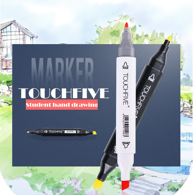 TOUCHFIVE Markers Pen Multicolor Set Anime Student Architecture Interior Design Sketch Alcohol Brush Art Marker (White Pen) :Click Here
