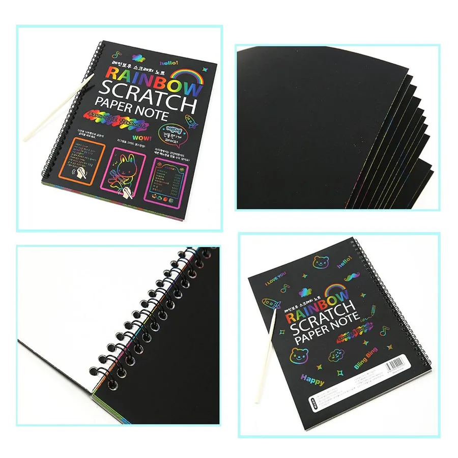 Buy Online 19*26cm Black Large Magic Color Rainbow Scratch Paper Note book DIY Drawing Toys Scraping Painting