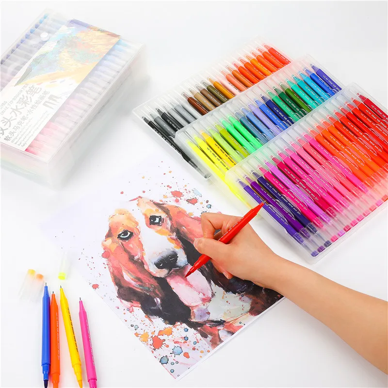 Trend 100PCS Colorful Pens Dual Tip Brush Marker Pen Watercolor Fine Liner Art Markers For Coloring Drawi
