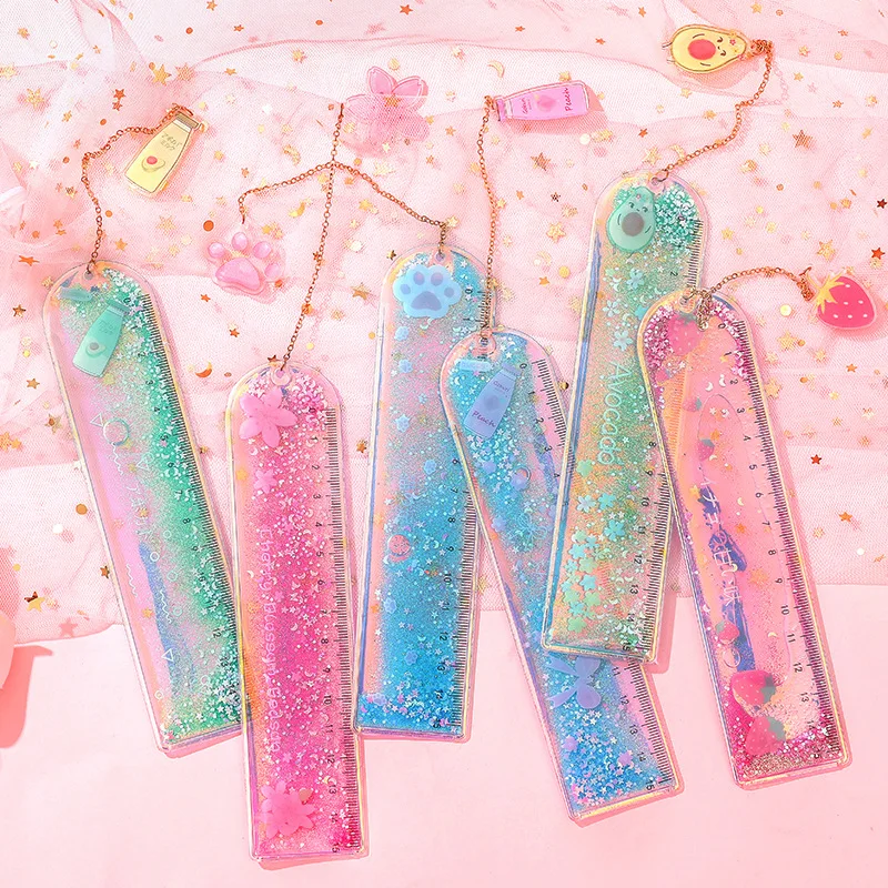 Big Deal 1 pcs/lot Oil flow sand bookmark rulers Kawaii laser girl drawing template lace Sewing Ruler statio