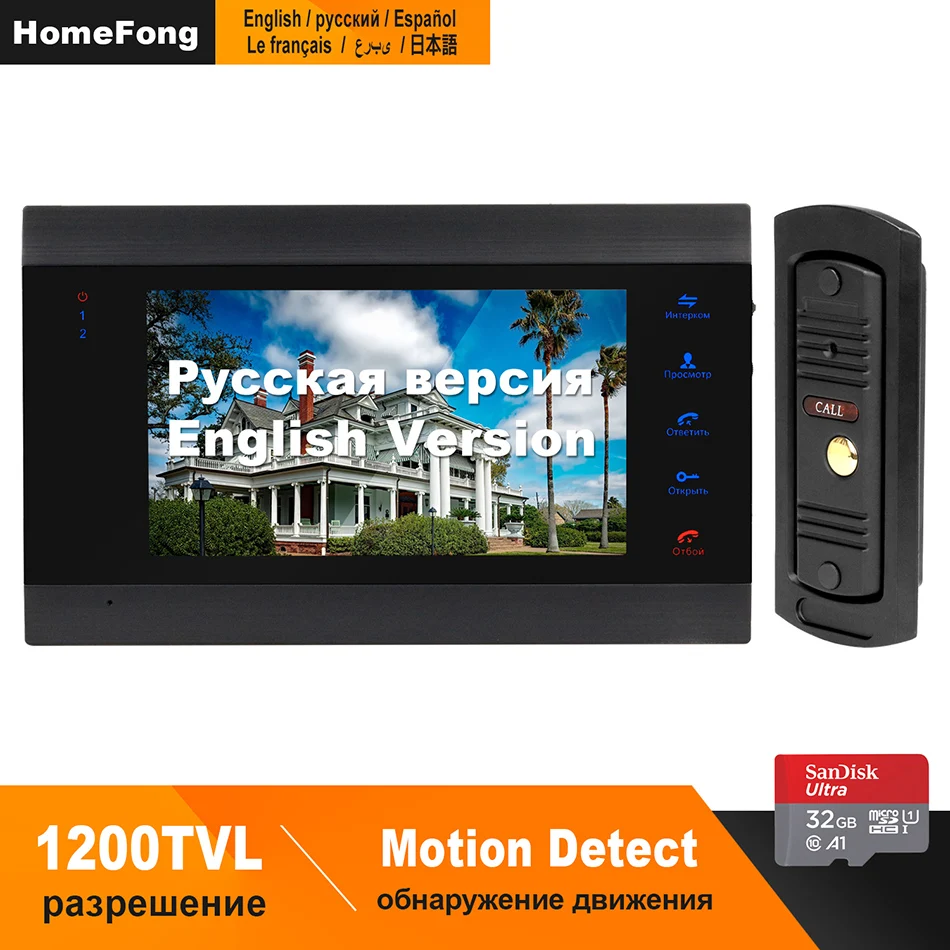 Best Product HomeFong Video Doorbell Home Intercom Video Door Phone 7 inch Monitor 1200TVL Doorbell Camera 32G M