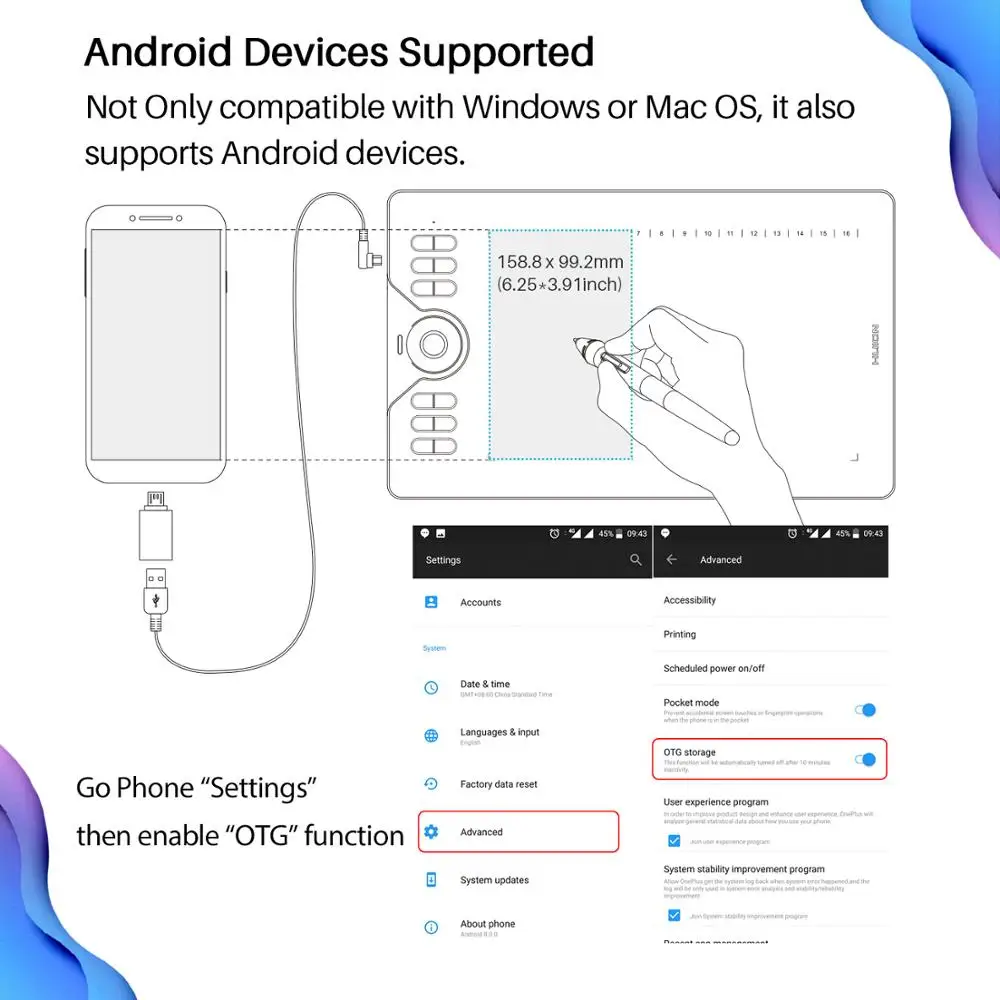 HUION HS610 Graphic Tablets Digital Pen Tablet Phone Drawing Tablet with Tilt OTG Battery-Free Stylus for Android Windows macOS :Click Here