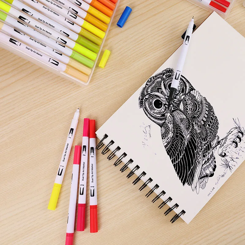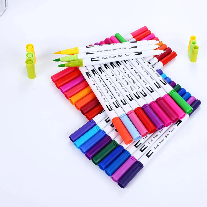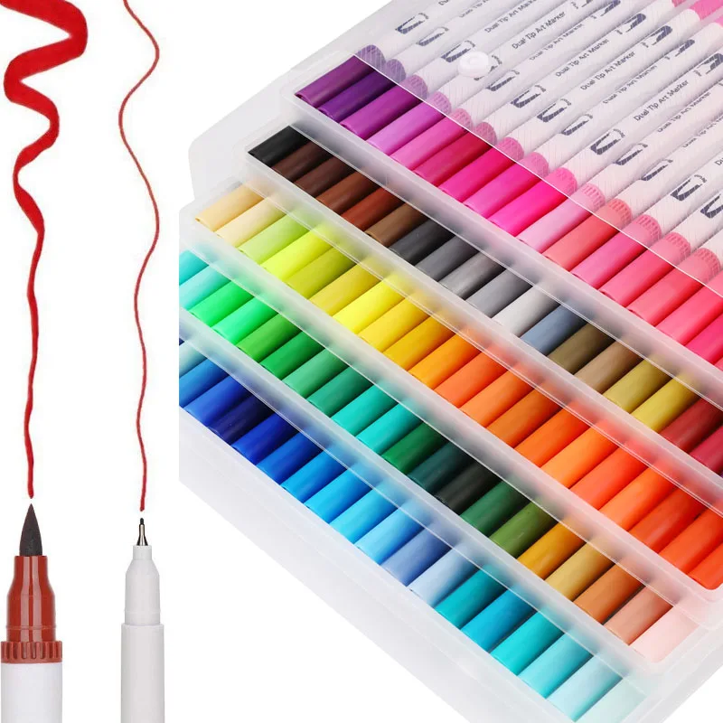 The Latest 12/24/36/48/72/100PCS Colors FineLiner Art Marker Pens Dual Tip Drawing Painting Watercolor Brush P