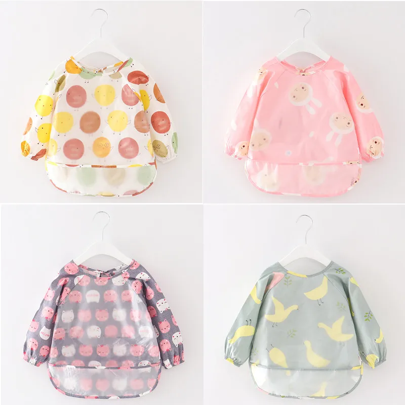 Baby Bandana Bibs Cute Cartoon Bibs Waterproof Infant Eating Children Drawing Long Short Sleeve Apron Baby Self Feeding Bib :Click Here