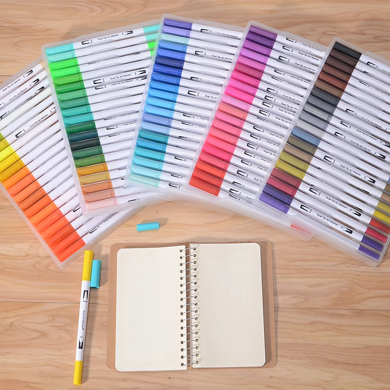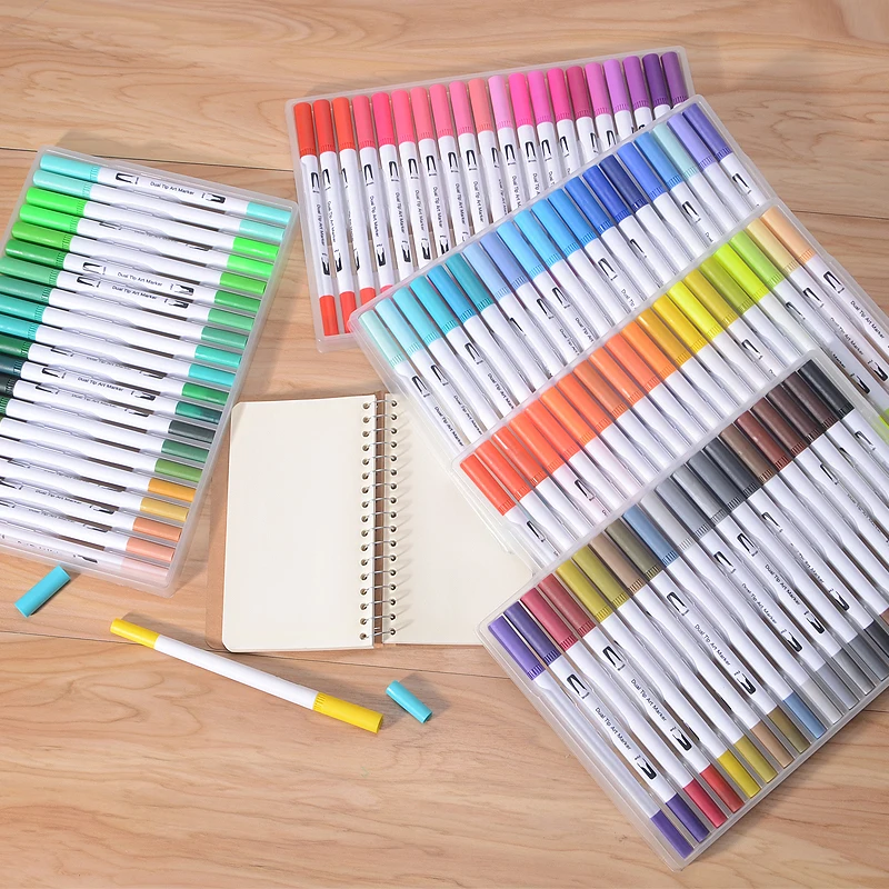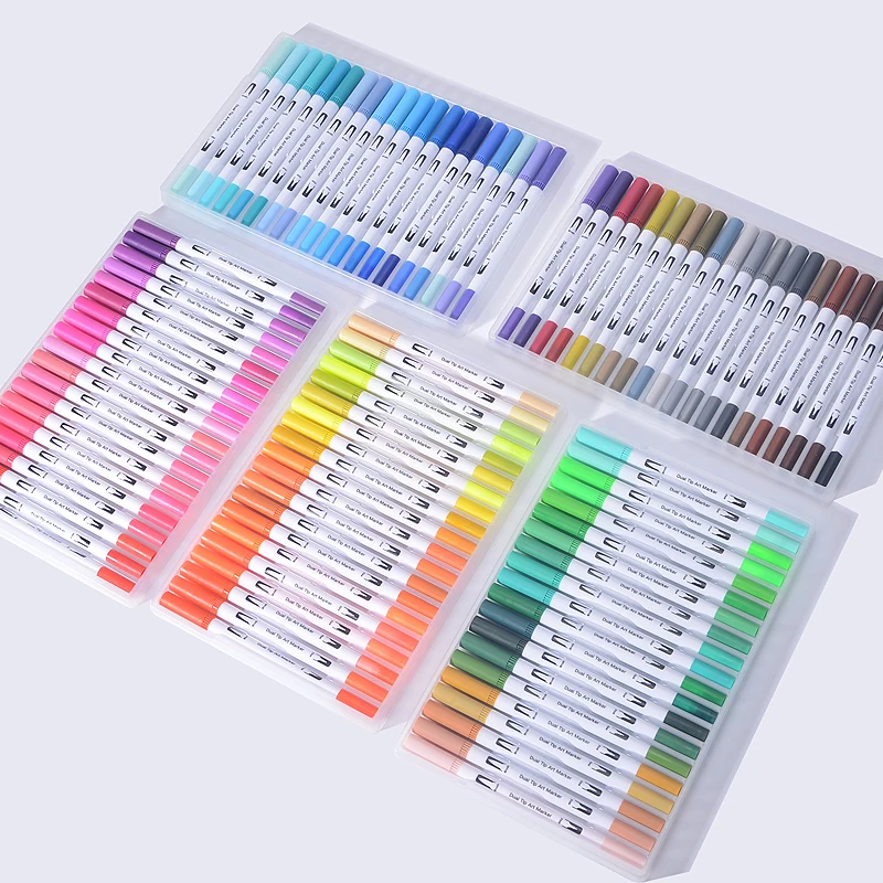 Latest Product 12/18/24/36/48/72/100PCS Colors FineLiner Art Marker Pens Watercolor Drawing Painting Dual Tip Brus