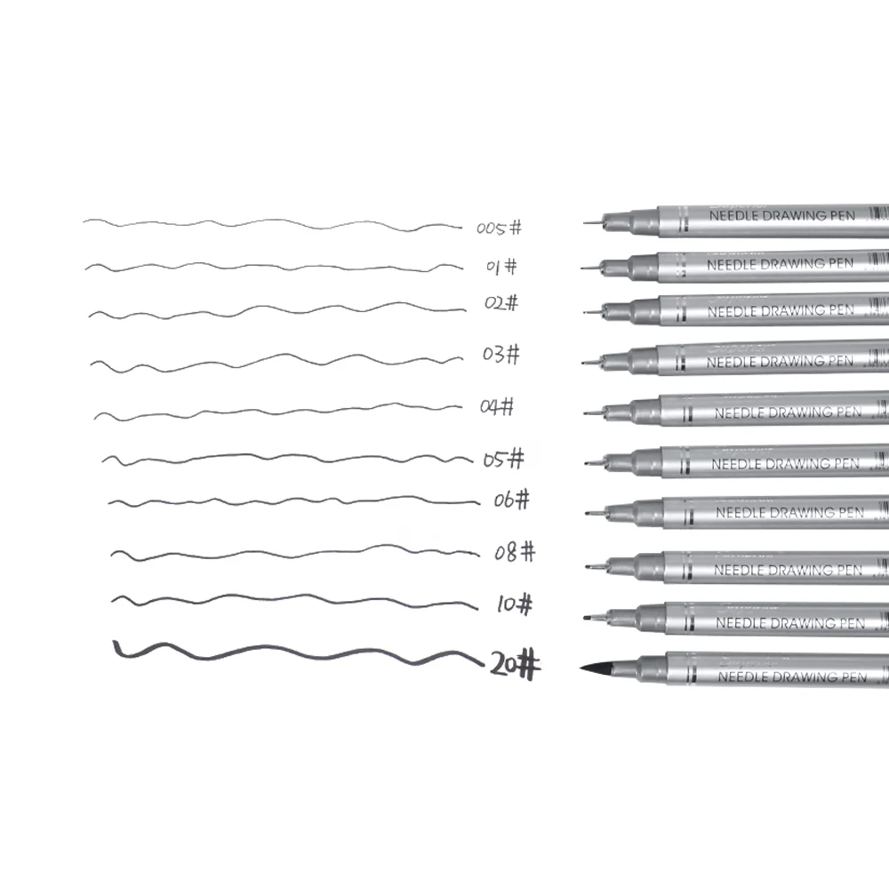 The Latest 10pcs Needle Drawing Pen Waterproof Sketch Pigment Fine Liner Pen Set Professional Marker Hook Pens