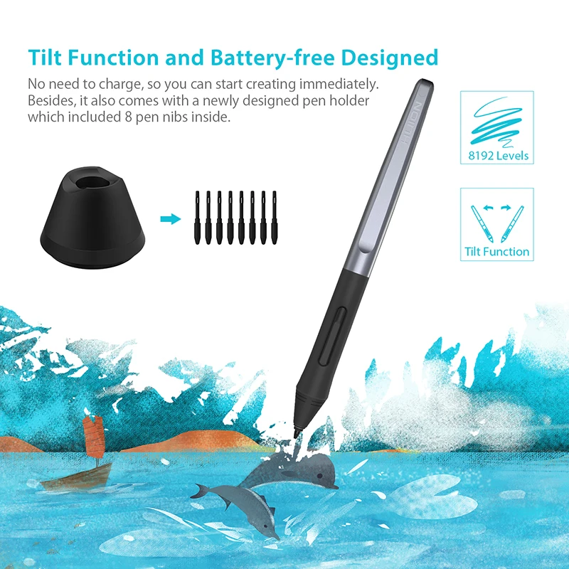 HUION H610 PRO V2 Graphic Drawing Digital Tablet 8192 Levels ±60° Tilt Function Battery-Free Pen with 8 Press 16 Soft Keys :Click Here